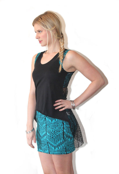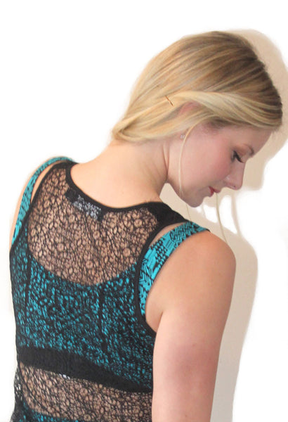 A new layering favourite, this mesh back tank features an asymmetrical hem that curves and dips in the back, leaving you with many options. The intricate, sheer pattern of the back panel is a cobwebby lace, which makes it perfect for tossing on over a bright lace bralette or patterned layer. We love the simplicity of the front juxtaposed with the stylized back, and the versatility this piece offers. Layer it over a brightly printed body-con dress, or wear it as a simple tank with denim for equal impact. By Evil Twin.