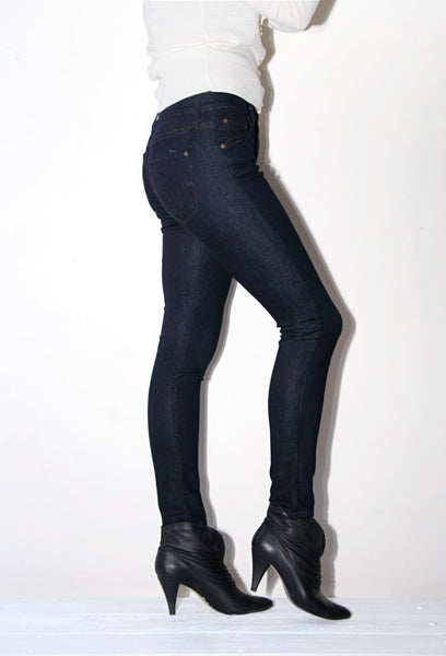 Slim cut legging jean with a long, lean silhouette and a slightly cropped ankle, perfect for tucking into boots. Dark wash goes with everything. 5 pocket style and single button front closure.