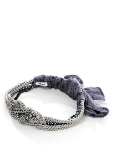 There's something to be said about a good bow, and we couldn't be more smitten with this luxe headband. Made with freshwater pearls, icy silver rope, chain accents and topped off with a gorgeous crushed velvet bow. Wear it either way for an extremely versatile look. We love it with a chunky knit and a bold lip.